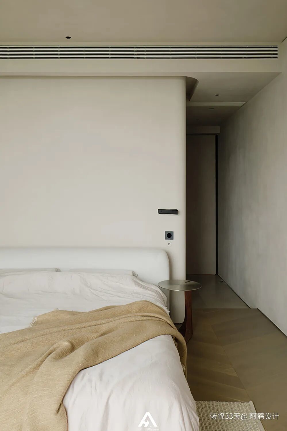 ▲ 主卧以低饱和度色调铺陈,每一处肌理都透着温润舒适的质感,床头两侧过道合理预留,形成流畅的洄游动线,日常起居更显从容