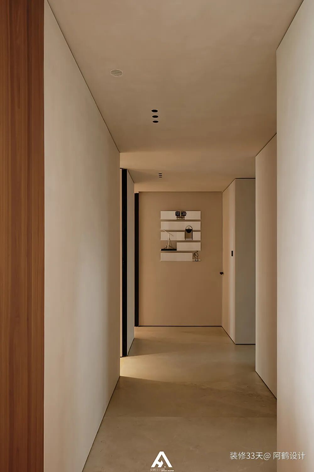 ▲ 走廊尽头墙面增设隔板打造展示区
