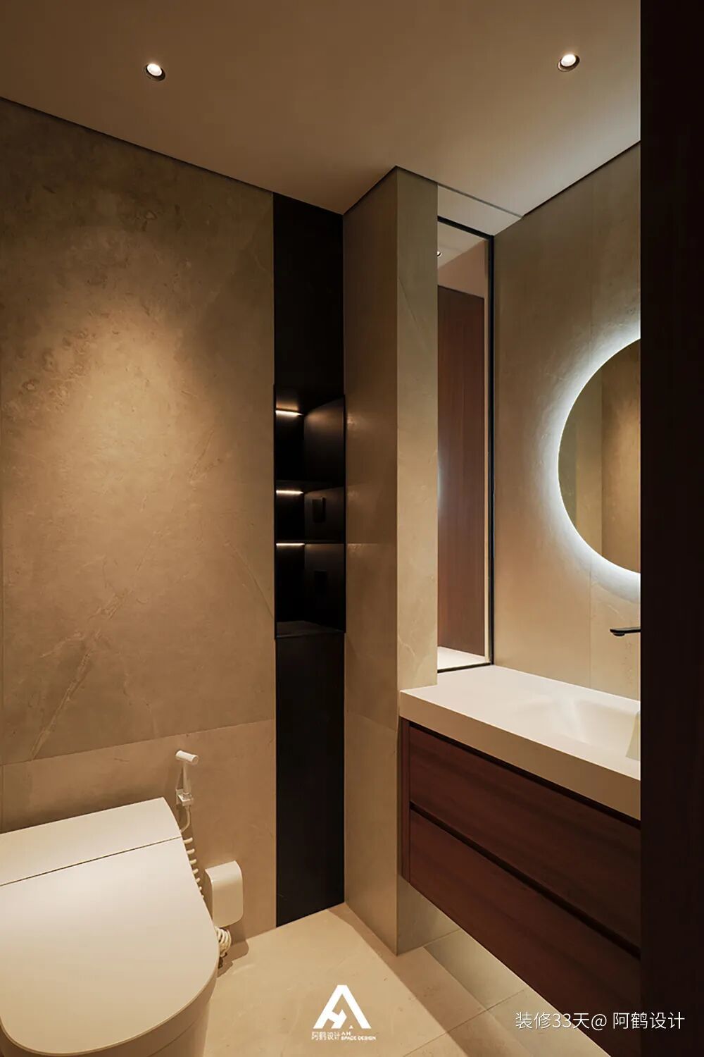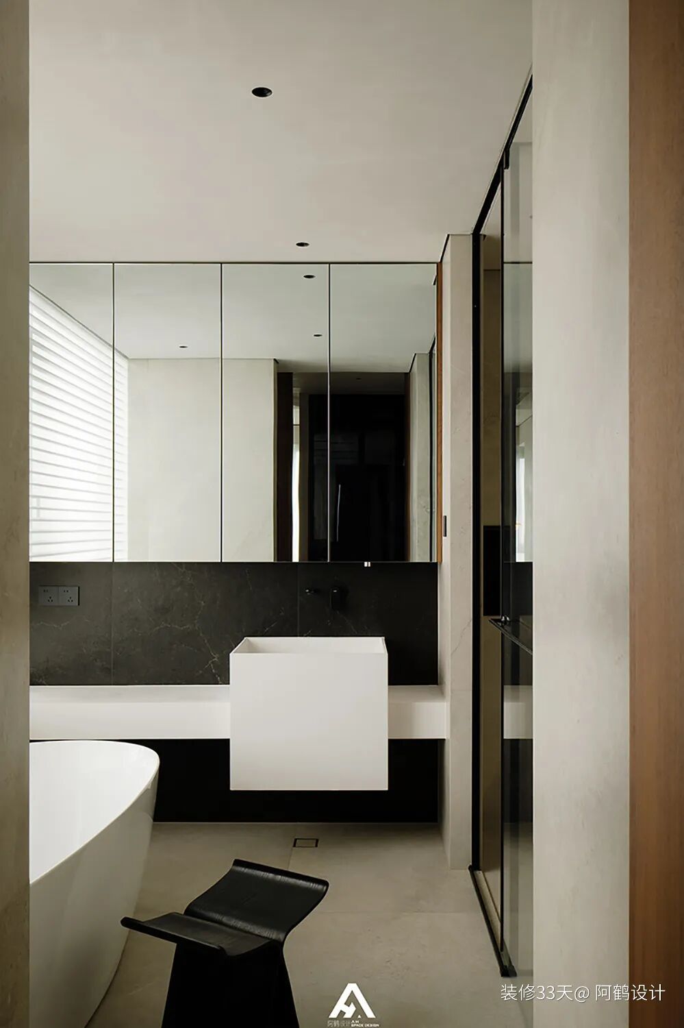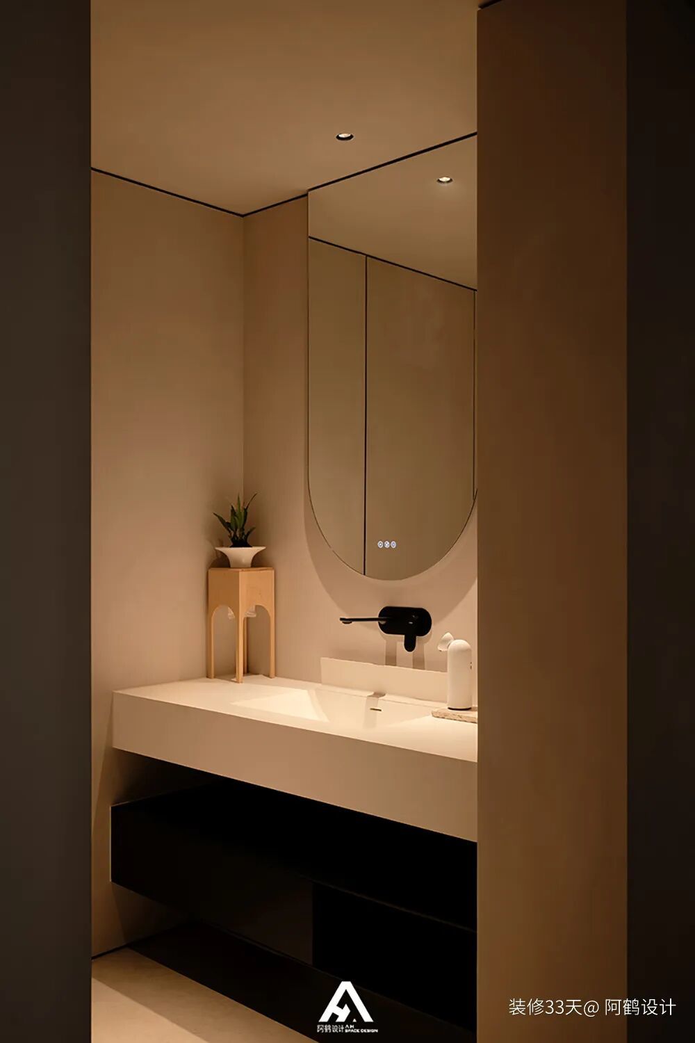 ▲ 主卫,设计一体式柱盆结合台面的组合,现代又个性,同时台面兼具梳妆台功能
