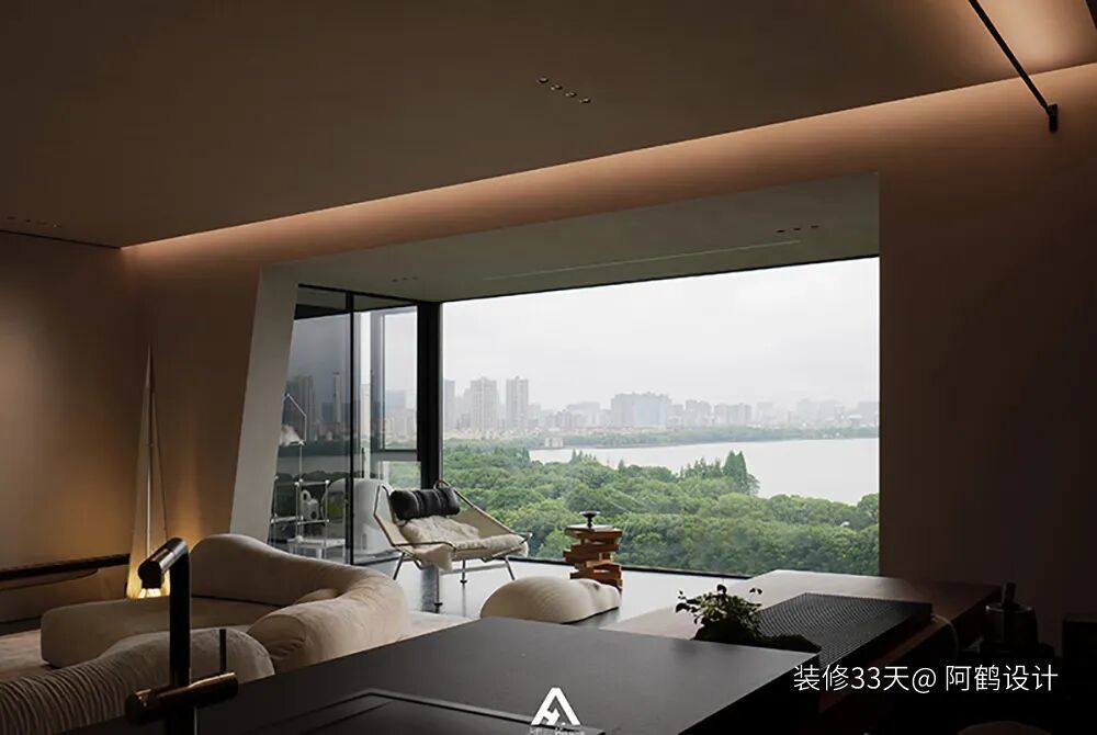 开放式洄游动线形成流畅的功能联动。凭窗远眺的悠然闲适,每一处尺度与材质都显露出真诚,用心营造出的空间让居住者自然且轻松。