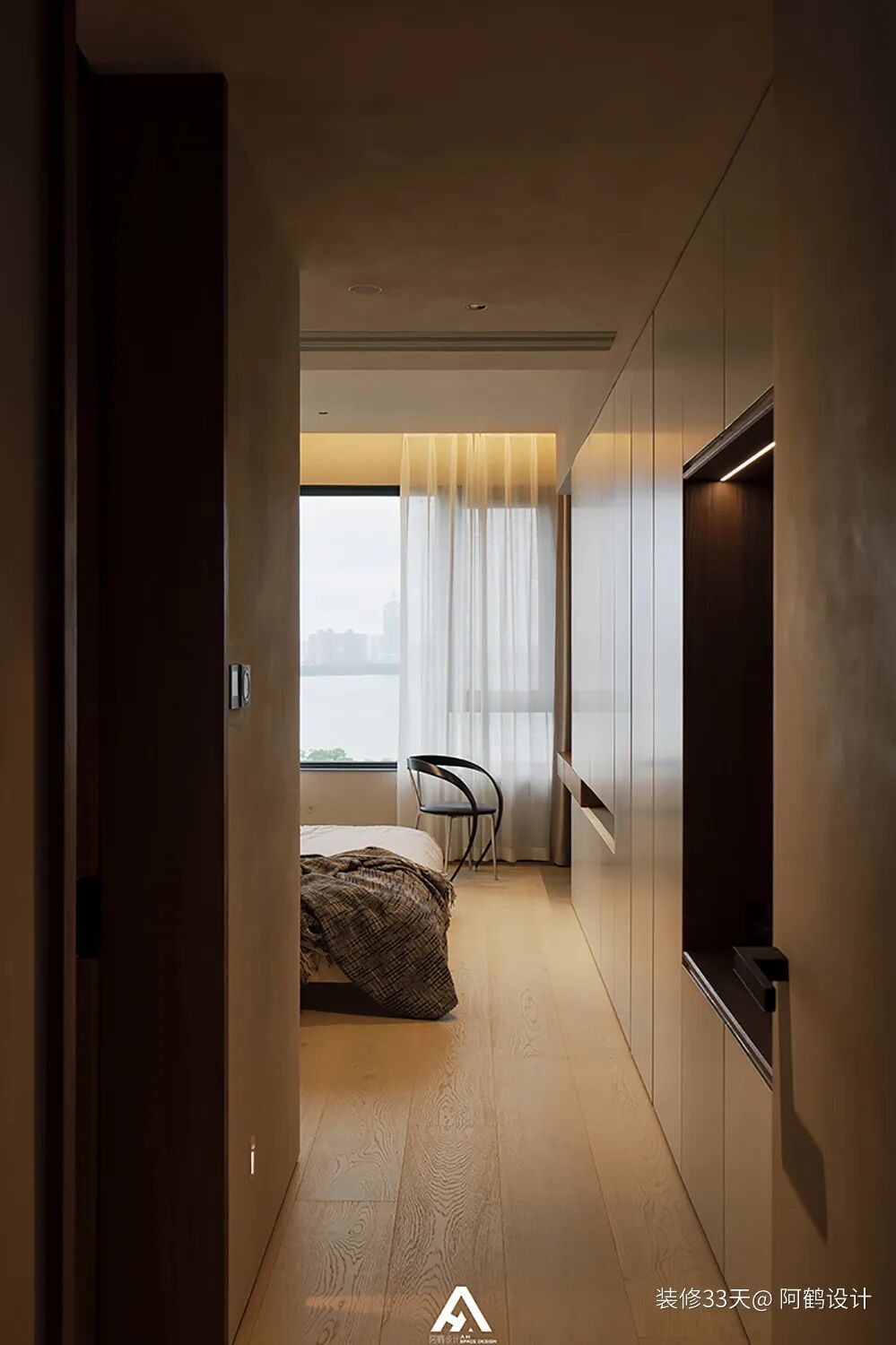 ▲ 父母房,靠墙做一排衣柜作为收纳系统悄然藏起生活琐碎