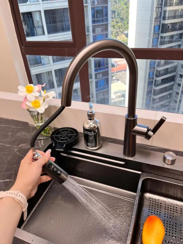 那种固定的水龙头,真的该淘汰了。洗水槽边角,洗不到,得拿抹布擦半天。洗个大锅,得抬着锅对准出水口,胳膊酸得要命。
