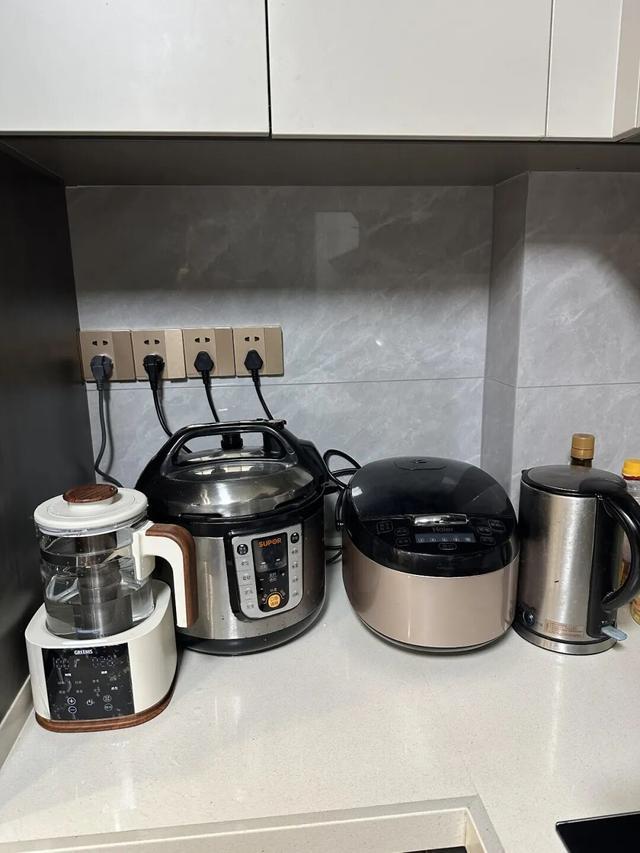厨房台面上摆满了电饭煲、空气炸锅、豆浆机、料理机?