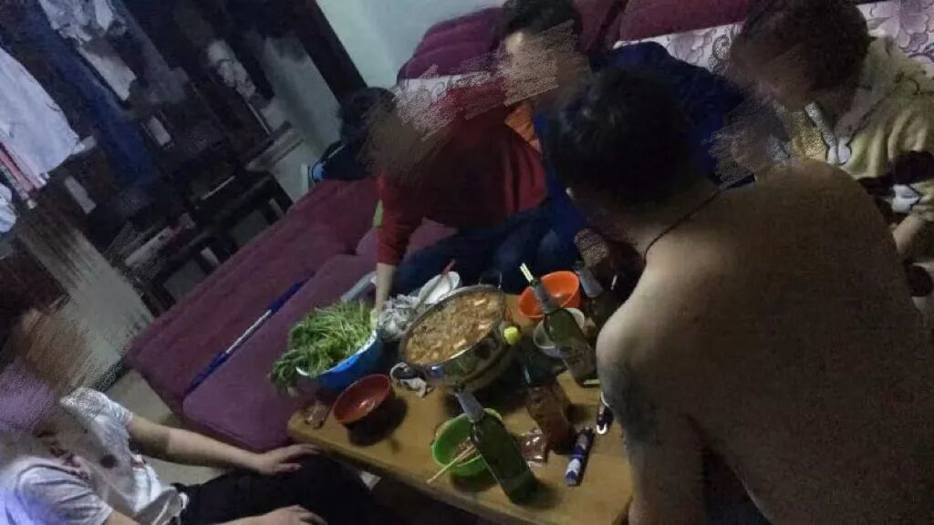 ■图 / 和老板在宿舍宵夜,红衣服-阿金,旁边蓝色衣服-老板